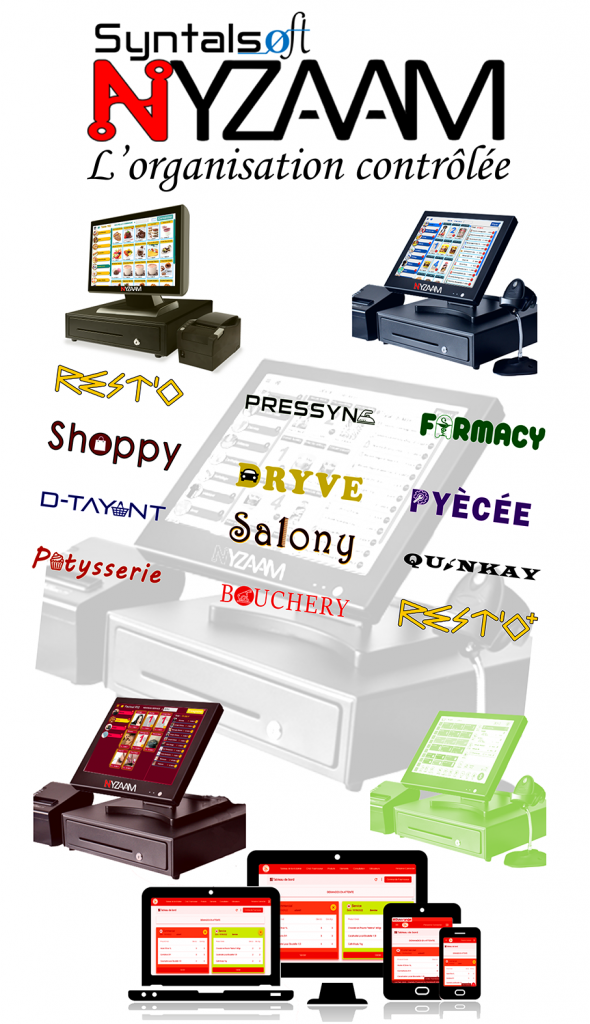 Nyzaam est une suite des logiciels de gestion des PME/I et TPE livrée généralement avec les PDV et autres équipements et accessoires en fonction du besoin. La suite Nyzaam est conçu en tenant compte des spécificités des marchés Africains pour les ventes en détails des articles ou des services.